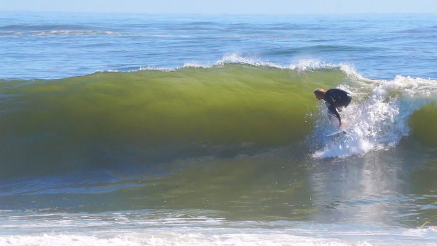 The duration of the 1-to-2-foot-high waves was close to 90 seconds. The surfer looked like having trouble maintaining his equilibrium once, but he succeeded in cruising till the end with pinpoint precision.