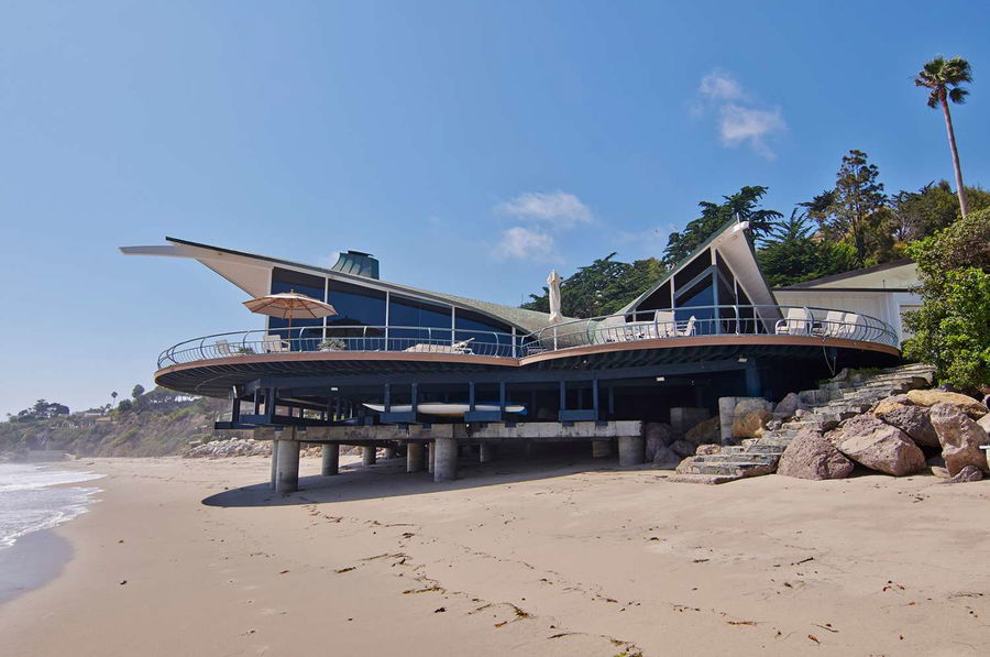 Rod Stewart, a pop musician, purchased the house in the 1970s and then sold it to Mo Ostin, a Warner Bros. record producer, in 1987. The amazing building seems at home in its coastal surroundings.