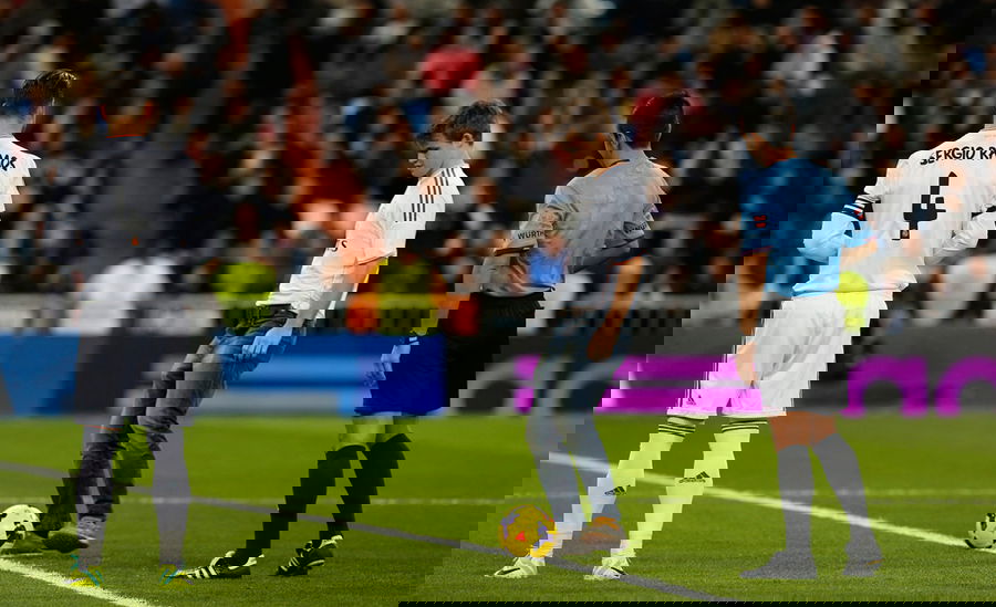 Magnus Carlsen taking the kick-off for Real Madrid. Courtesy: DNA India