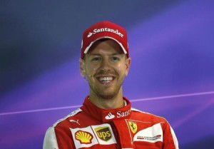 Ferrari Formula One driver Sebastian Vettel smiles during the post qualifying news conference at the Singapore F1 Grand Prix September 19, 2015. REUTERS/Edgar Su