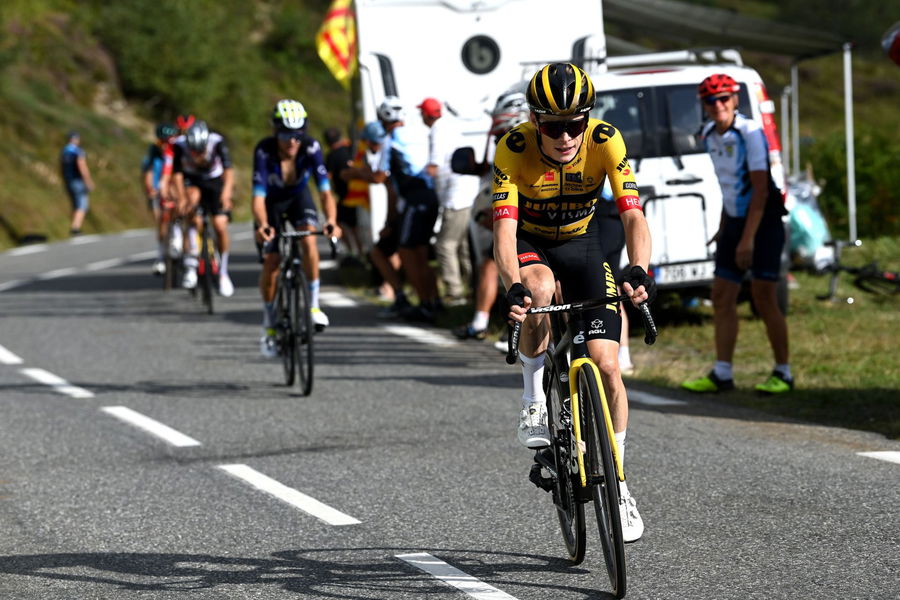 SAINT-ETIENNE, FRANCE – JULY 15: Jonas Vingegaard Rasmussen of Denmark and Team Jumbo – Visma – Yellow Leader Jersey competes during the 109th Tour de France 2022, Stage 13 a 192,6km stage from Le Bourg d’Oisans to Saint-Etienne 488m / #TDF2022 / #WorldTour / on July 15, 2022 in Saint-Etienne, France. (Photo by Alex Broadway/Getty Images)