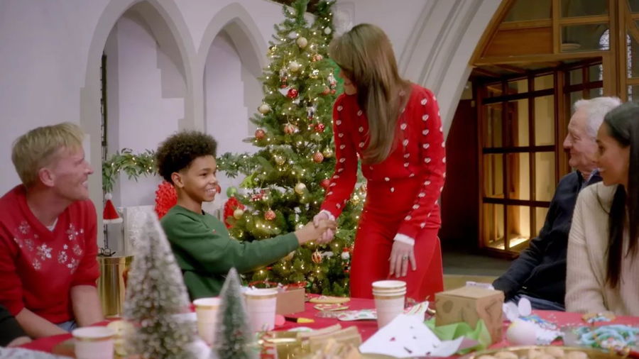 Dropping jaws with her sudden yet graceful presence, it all went high for the football addict when Kate made a royal entry, sparking anticipation in a gentle approach. With her usual humble tone on display, the princess initiated her well-planned Christmas venture, remarking, “Sorry to disturb the party, hope you don’t mind!”