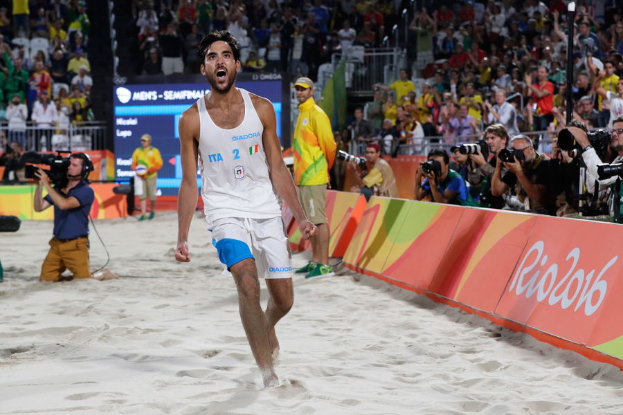 RIO DE JANEIRO, BRAZIL – AUGUST 16: Daniele Lupo of Italy playing with Paolo Nicolai of Italy celebrates winning the beach volleyball Men’s Semi final against Viacheslav Krasilnikov and Konstantin Semenov of Russia on Day 11 of the Rio 2016 Olympic Games at the Beach Volleyball Arena on August 16, 2016 in Rio de Janeiro, Brazil. (Photo by Jamie Squire/Getty Images)