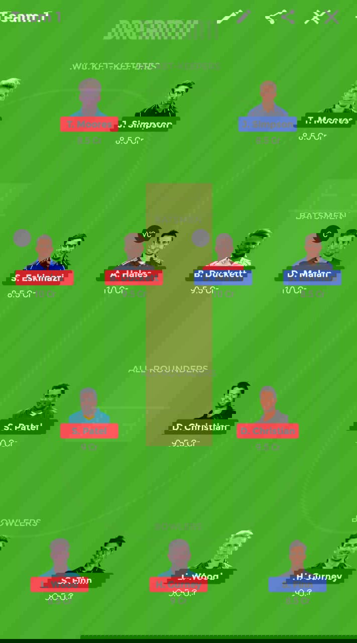 Batters: Alex Hales, Ben Duckett, Dawid Malan, S Eskinazi
