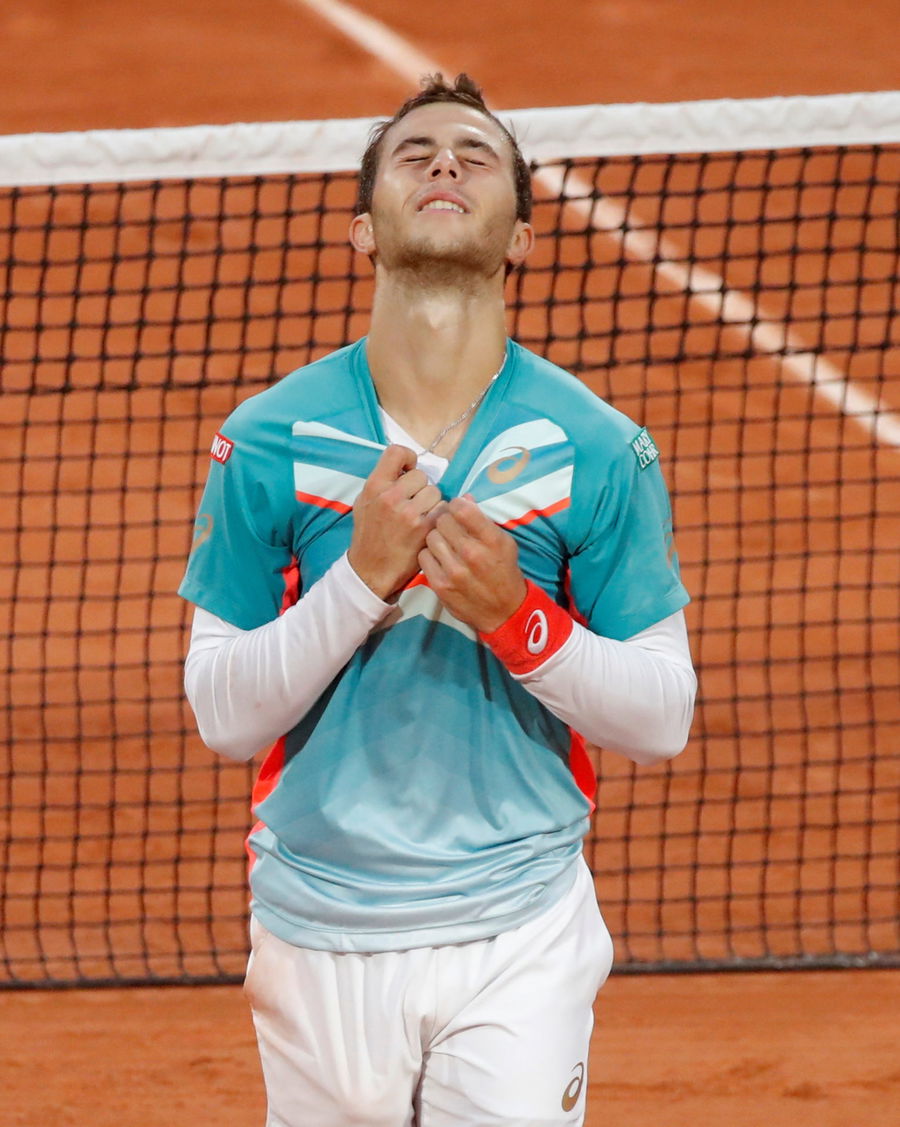 France’s Hugo Gaston celebrates winning his third-round match against Switzerland’s Stan Wawrinka REUTERS/Charles Platiau
