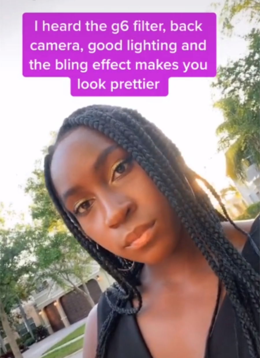 Another video showed her walking around her house during the golden hour. The sun perfectly hit her face as it showed her sleek eyeshadow.