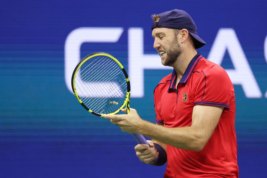 NEW YORK, NEW YORK – SEPTEMBER 04: Jack Sock of the United States reacts against Alexander Zverev of Germany during his Men’s Singles third round match on Day Six of the 2021 US Open at the USTA Billie Jean King National Tennis Center on September 04, 2021 in the Flushing neighborhood of the Queens borough of New York City. (Photo by Elsa/Getty Images)