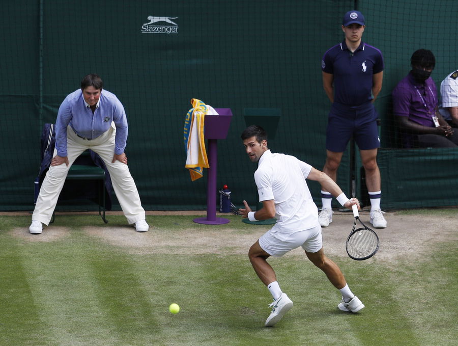 Novak Djokovic in action during his final match against Italy’s Matteo Berrettini Pool via REUTERS/Peter Nicholls