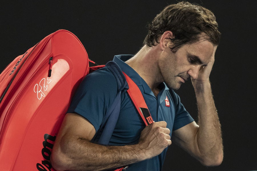 Switzerland’s Roger Federer waves to the crowd after losing to Greece’s Stefanos Tsitsipas during their men’s singles match on day seven of the Australian Open tennis tournament in Melbourne on January 20, 2019. (Photo by Fred Lee/Getty Images)