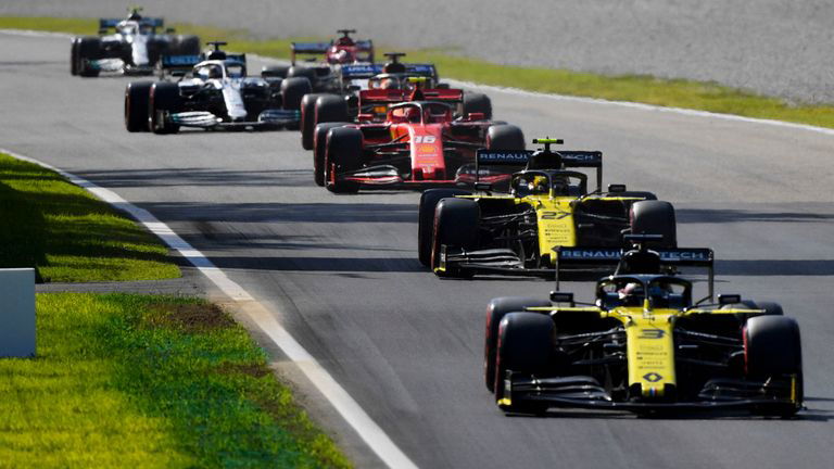 What followed next was a bizarre scene where every driver backed off, almost to a standstill. So, Hulkenberg rejoined, still ahead of the other 8 drivers and they all continued backing off while the timer ticked down.