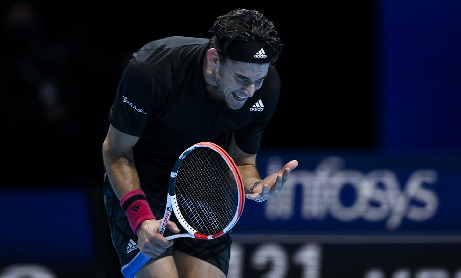 LONDON, ENGLAND: Dominic Thiem of Austria looks dejected during his match against Daniil Medvedev of Russia during Day 8 of the Nitto ATP World Tour Finals at The O2 Arena in London, England. (Photo by TPN/Getty Images)