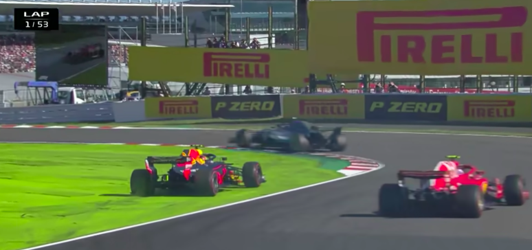 Did Vettel not run out of the track and on the grass as he’d cut a major part of the turn to maintain his lead over Hamilton?
