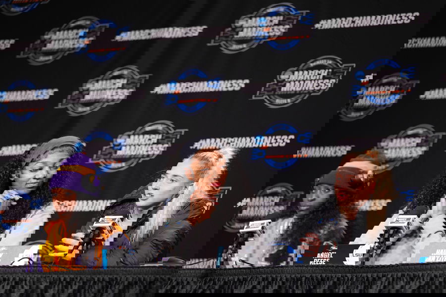 Syndication: The Des Moines Register LSU Lady Tigers guard Flau jae Johnson 4 forward Angel Reese 10 and guard Hailey Van Lith 11 take questions from the media at MVP Arena, Sunday, March 31, 2024 in Albany, N.Y. Des Moines , EDITORIAL USE ONLY PUBLICATIONxINxGERxSUIxAUTxONLY Copyright: xZachxBoyden-Holmes/ThexRegisterx USATSI_22910769