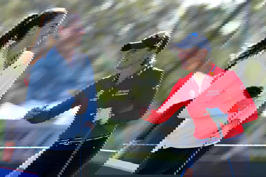 BELLEAIR, FL – NOVEMBER 13: Indiana Fever guard Caitlin Clark talks with Hall of Fame golfer Annika Sorenstam on right as they wait on the 11th tee on November 13, 2024, during the LPGA, Golf Damen The ANNIKA driven by Gainbridge Pro Am at Pelican Golf Club in Belleair, Florida. Photo by Brian Spurlock/Icon Sportswire GOLF: NOV 13 LPGA The ANNIKA driven by Gainbridge at Pelican Pro Am EDITORIAL USE ONLY Icon24111332