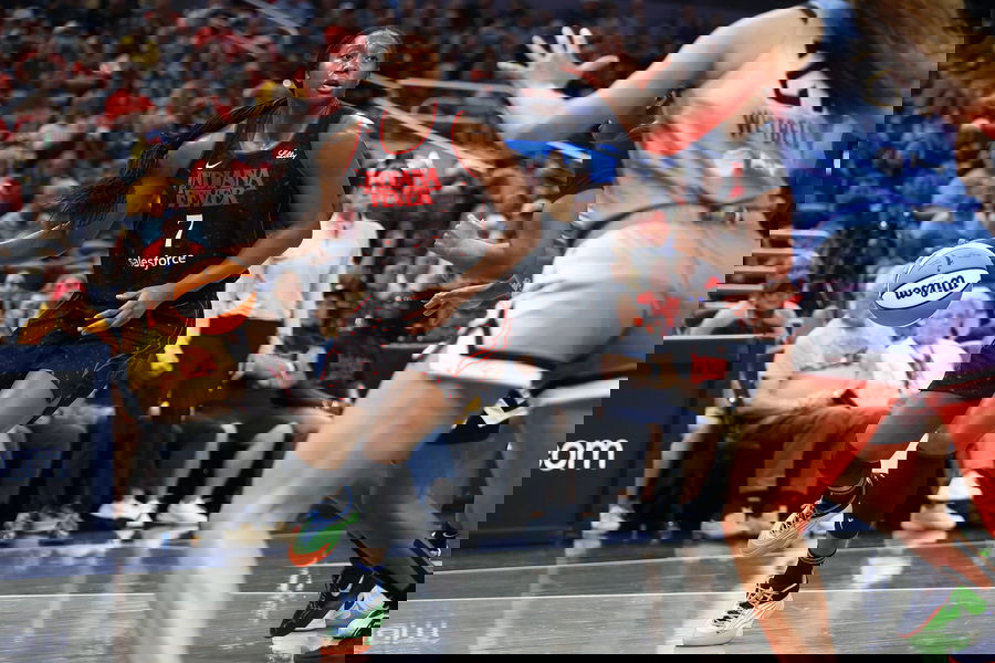 The ball was with Kelsey Mitchell at the three-point line as she looked for the shot. But as Aliyah Boston was looking to cut, she got tangled up with Jones. As she was appealing to the referees to call for a foul, she threw Jones to the ground. The play was reviewed, and ultimately Boston got the technical while Jones was given a personal. While this play did not bring any points, it changed the flow of the game.