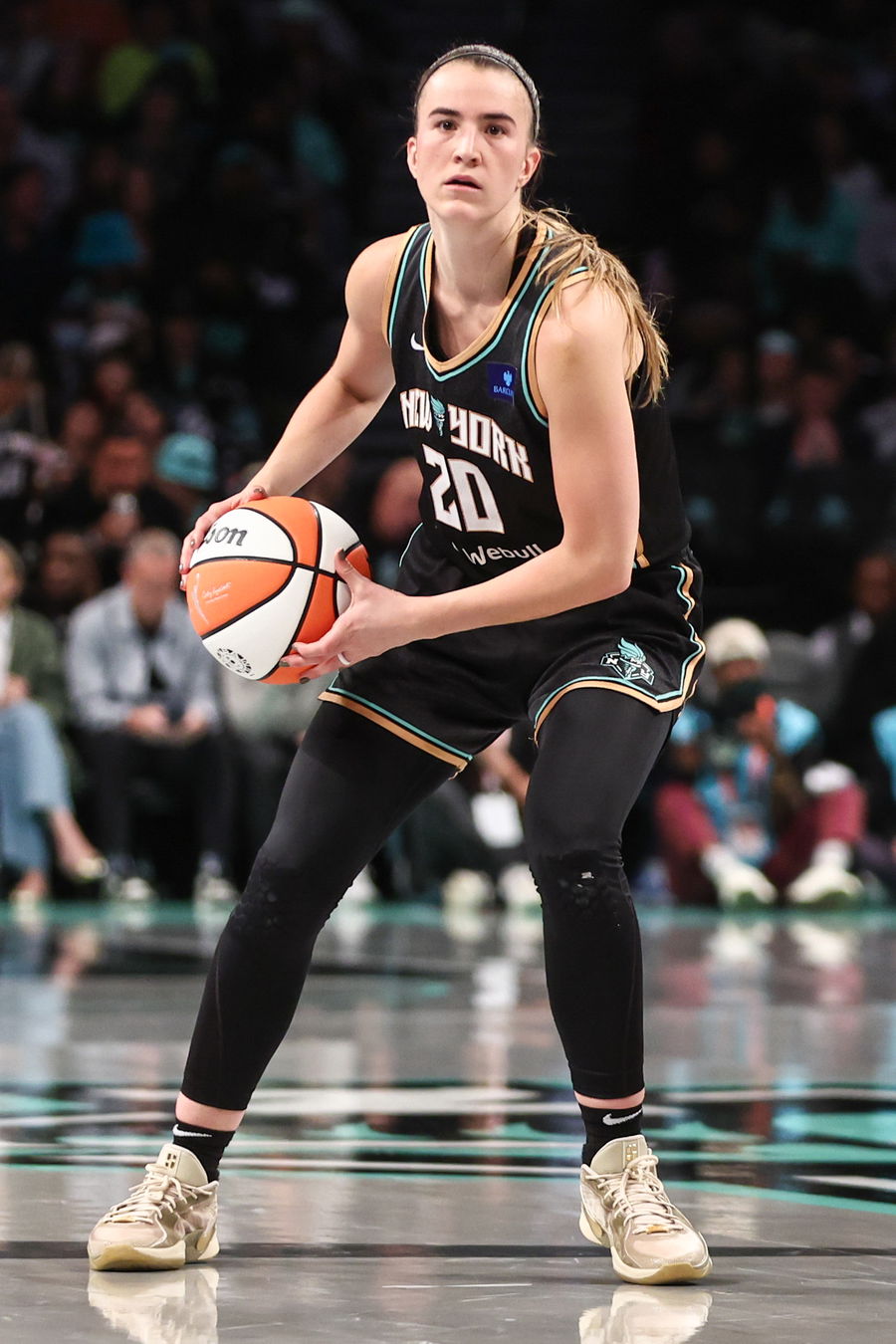 Oct 10, 2024; Brooklyn, New York, USA; New York Liberty guard Sabrina Ionescu (20) at Barclays Center. Mandatory Credit: Wendell Cruz-Imagn Images