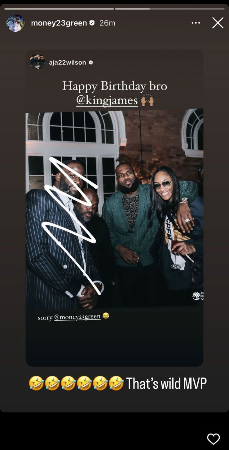 On NBA legend LeBron James‘ birthday, A’ja Wilson took to her Instagram to wish the King. She posted a picture of her with James and Green on her stories, and wrote, “Happy Birthday bro” and tagged King James’ official Instagram handle. But being A’ja Wilson this post also had its lighthearted amusement.