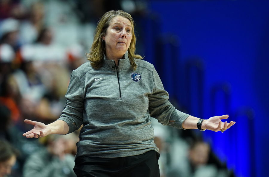 Oct 6, 2024; Uncasville, Connecticut, USA; Minnesota Lynx head coach Cheryl Reeve watches from the sideline as they take on the Connecticut Sun during game four of the 2024 WNBA Semi-finals at Mohegan Sun Arena. Mandatory Credit: David Butler II-Imagn Images