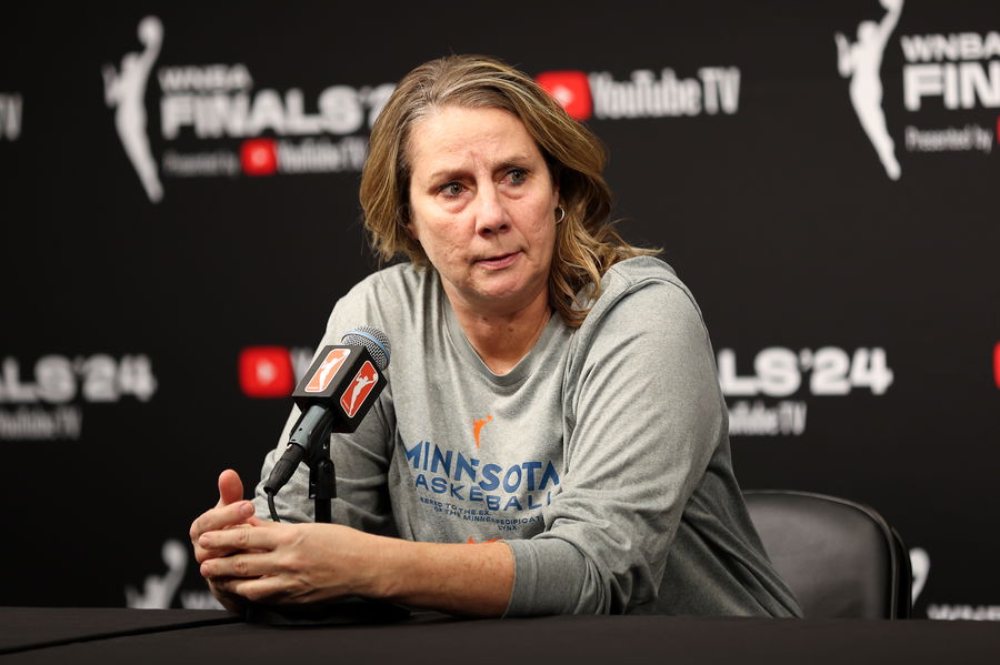 Oct 18, 2024; Minneapolis, Minnesota, USA; Minnesota Lynx head coach Cheryl Reeve talks to the media before game four of the 2024 WNBA Finals against the New York Liberty at Target Center. Mandatory Credit: Matt Krohn-Imagn Images