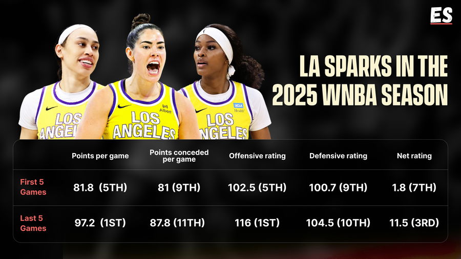 Over their last five games, the Sparks have been on fire. They’re leading the league in points per game with 97.2. Offensively, they’ve been unstoppable, posting a league-best rating of 116. And it doesn’t stop there. Their net rating? A solid 11.5, third-best during this run. The numbers don’t lie. They have been unstoppable.