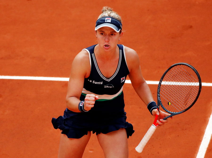 Argentina’s Nadia Podoroska celebrates during her quarterfinal match against Ukraine’s Elina Svitolina REUTERS/Gonzalo Fuentes