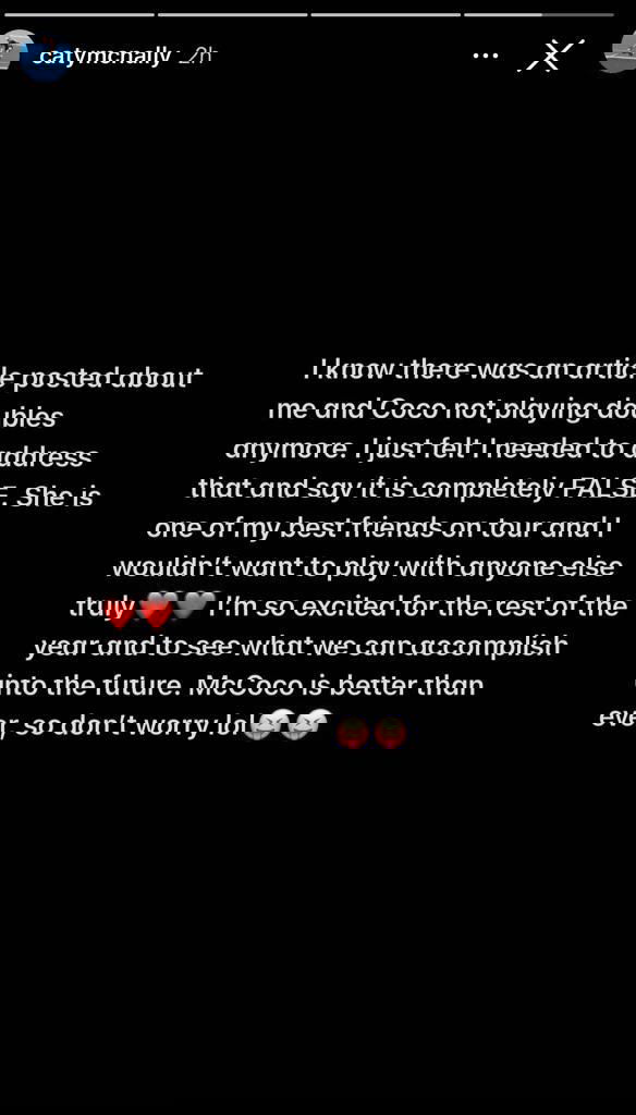 “She is one of my best friends on tour and I wouldn’t want to play with anyone else truly I’m so excited for the rest of the year and to see what we can accomplish into the future. McCoco is better than ever, so don’t worry lol.”