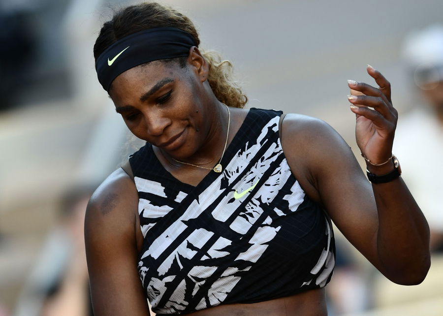 Serena Williams of the US reacts during her women’s singles third round match against Sofia Kenin of the US, on day seven of The Roland Garros 2019 French Open tennis tournament in Paris on June 1, 2019. (Photo by Philippe LOPEZ / AFP)