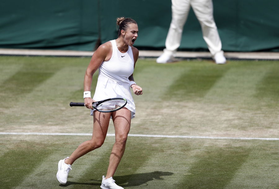 Tennis – Wimbledon – All England Lawn Tennis and Croquet Club, London, Britain – July 5, 2021 Belarus’ Aryna Sabalenka reacts during her fourth round match against Kazakhstan’s Elena Rybakina REUTERS/Peter Nicholls