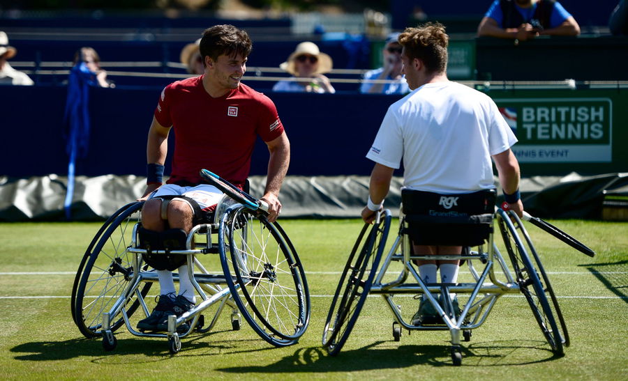 Mandatory Credit: Photo by Ian Tuttle/BPI/Shutterstock 9730822g Gordon Reid in red and Alfie Hewitt Nature Valley International Championships, Devonshire Park, Eastbourne, UK – 29 June 2018 Nature Valley International Championships, Devonshire Park, Eastbourne, UK – 29 June 2018 PUBLICATIONxINxGERxSUIxAUTXHUNxGRExMLTxCYPxROMxBULxUAExKSAxONLY Copyright: xIanxTuttle/BPI/Shutterstockx 9730822g