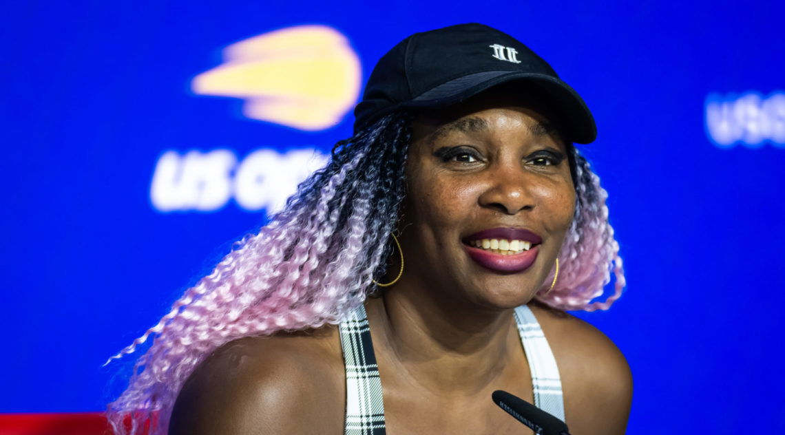 NEW YORK, NEW YORK – AUGUST 29: Venus Williams of the United States talks to the media after losing to Greet Minnen of Belgium in the first round on Day 2 of the US Open at USTA Billie Jean King National Tennis Center on August 29, 2023 in New York City (Photo by Robert Prange/Getty Images)