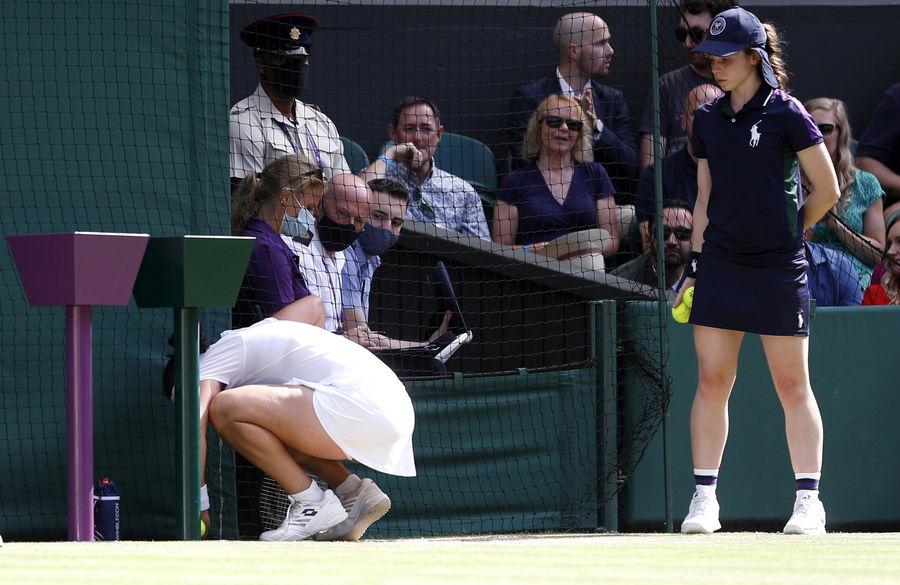 Tennis – Wimbledon – All England Lawn Tennis and Croquet Club, London, Britain – July 2, 2021 Tunisia’s Ons Jabeur retrieving the ball during her third round match against Spain’s Garbine Muguruza REUTERS/Peter Nicholls
