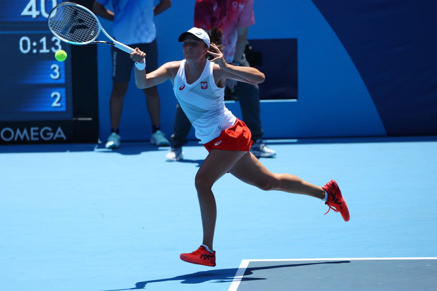 Tokyo 2020 Olympics – Tennis – Women’s Singles – Round 1 – Ariake Tennis Park – Tokyo, Japan – July 24, 2021. Iga Swiatek of Poland in action during her first round match against Mona Barthel of Germany REUTERS/Mike Segar