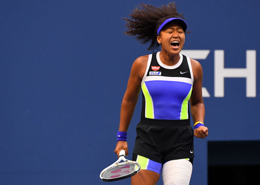 Sep 12, 2020; Flushing Meadows, New York, USA; Naomi Osaka of Japan reacts during the third set against Victoria Azarenka of Belarus in the women’s singles final match on day 13 of the 2020 U.S. Open tennis tournament at USTA Billie Jean King National Tennis Center. Mandatory Credit: Robert Deutsch-USA TODAY Sports