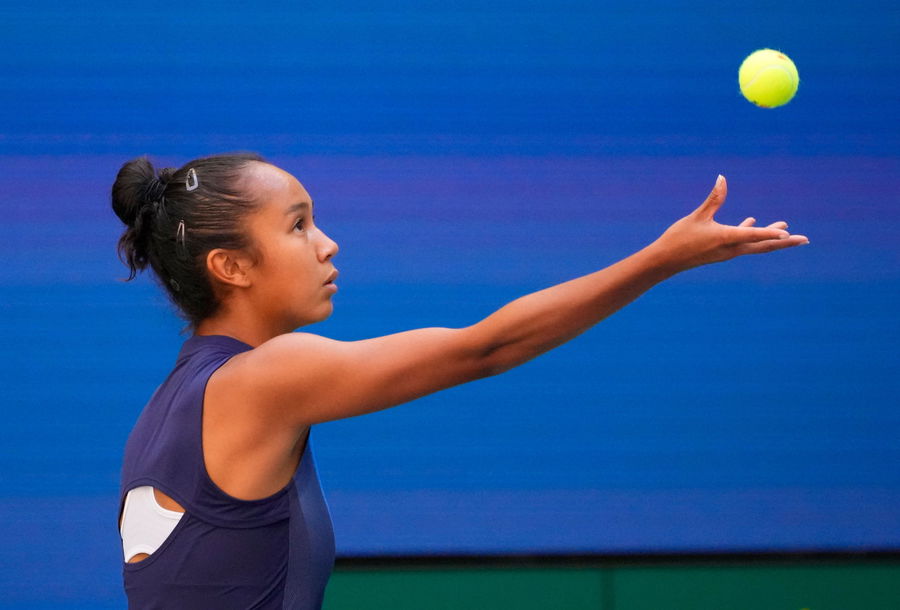 Sep 7, 2021; Flushing, NY, USA; Leylah Fernandez of Canada serves to Elina