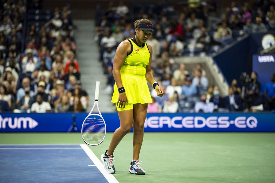NEW YORK, NEW YORK – SEPTEMBER 03: Naomi Osaka of Japan throws her racket down in frustration against Leylah Fernandez of Canada in the third round of the women’s singles at the US Open at the USTA Billie Jean King National Tennis Center on September 03, 2021 in New York City. (Photo by TPN/Getty Images)