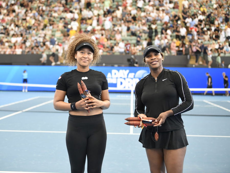 Tennis – A Day at the Drive Exhibition – Memorial Drive Tennis Club, Adelaide, Australia – January 29, 2021 Japan’s Naomi Osaka and Serena Williams of the U.S. talk to the media at A Day at The Drive REUTERS/Morgan Sette