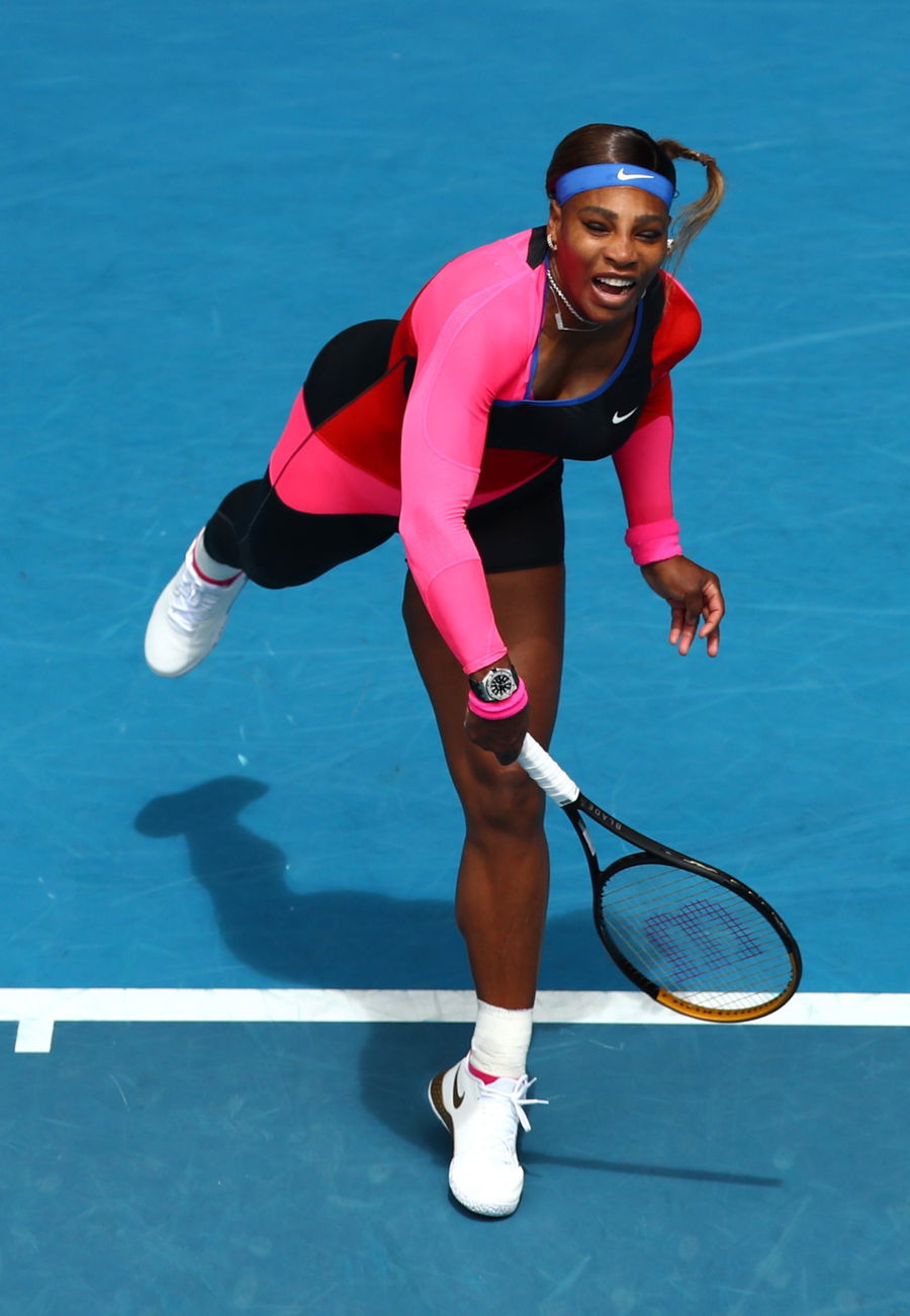 Tennis – Australian Open – Melbourne Park, Melbourne, Australia, February 8, 2021 Serena Williams of the U.S. in action during her first round match against Germany’s Laura Siegemund REUTERS/Kelly Defina