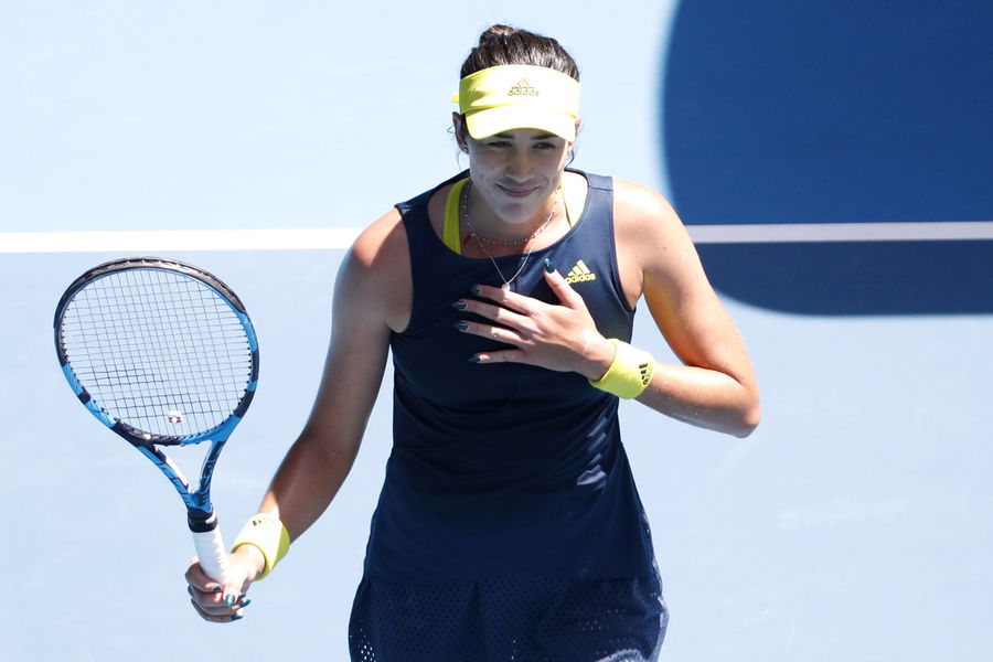 Tennis – Australian Open – Melbourne Park, Melbourne, Australia, February 12, 2021 Spain’s Garbine Muguruza celebrates winning her third round match against Kazakhstan’s Zarina Diyas REUTERS/Asanka Brendon Ratnayake