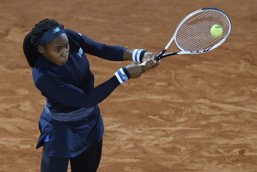 Coco Gauff of the U.S. in action during her first-round match against Britain’s Johanna Konta REUTERS/Christian Hartmann