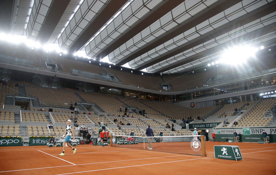 Tennis – French Open – Roland Garros, Paris, France – September 27, 2020 General view inside the arena ahead of the first round match between Belgium’s David Goffin and Italy’s Jannik Sinner. REUTERS/Charles Platiau