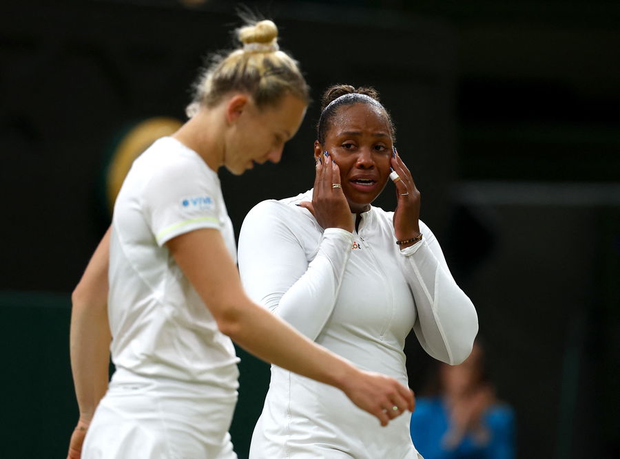 Tennis – Wimbledon – All England Lawn Tennis and Croquet Club, London, Britain – July 13, 2024 Taylor Townsend of the U.S. celebrates winning the women’s doubles final with Czech Republic’s Katerina Siniakova against Canada’s Gabriela Dabrowski and New Zealand’s Erin Routliffe REUTERS/Matthew Childs