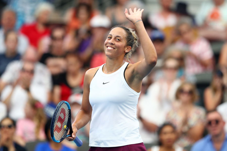 BRISBANE, AUSTRALIA – JANUARY 10: Madison Keys of the United States celebrates winning her quarterfinal match against Danielle Collins of the United States during day five of the 2020 Brisbane International at Pat Rafter Arena on January 10, 2020, in Brisbane, Australia. (Photo by Chris Hyde/Getty Images)