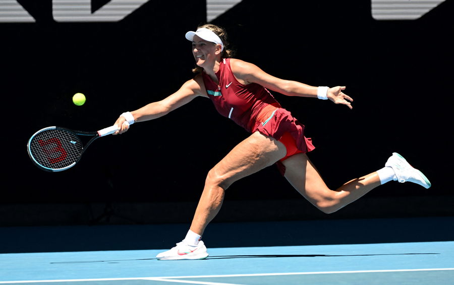 Tennis – Australian Open – Melbourne Park, Melbourne, Australia – January 21, 2022 Belarus’ Victoria Azarenka in action during her third round match against Ukraine’s Elina Svitolina REUTERS/Morgan Sette
