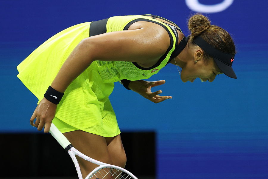 NEW YORK, NEW YORK – SEPTEMBER 03: Naomi Osaka of Japan reacts to a lost point during a tie break against Leylah Fernandez of Canada during her Women’s Singles third round match on Day Five of the US Open at USTA Billie Jean King National Tennis Center on September 03, 2021 in New York City. (Photo by Elsa/Getty Images)