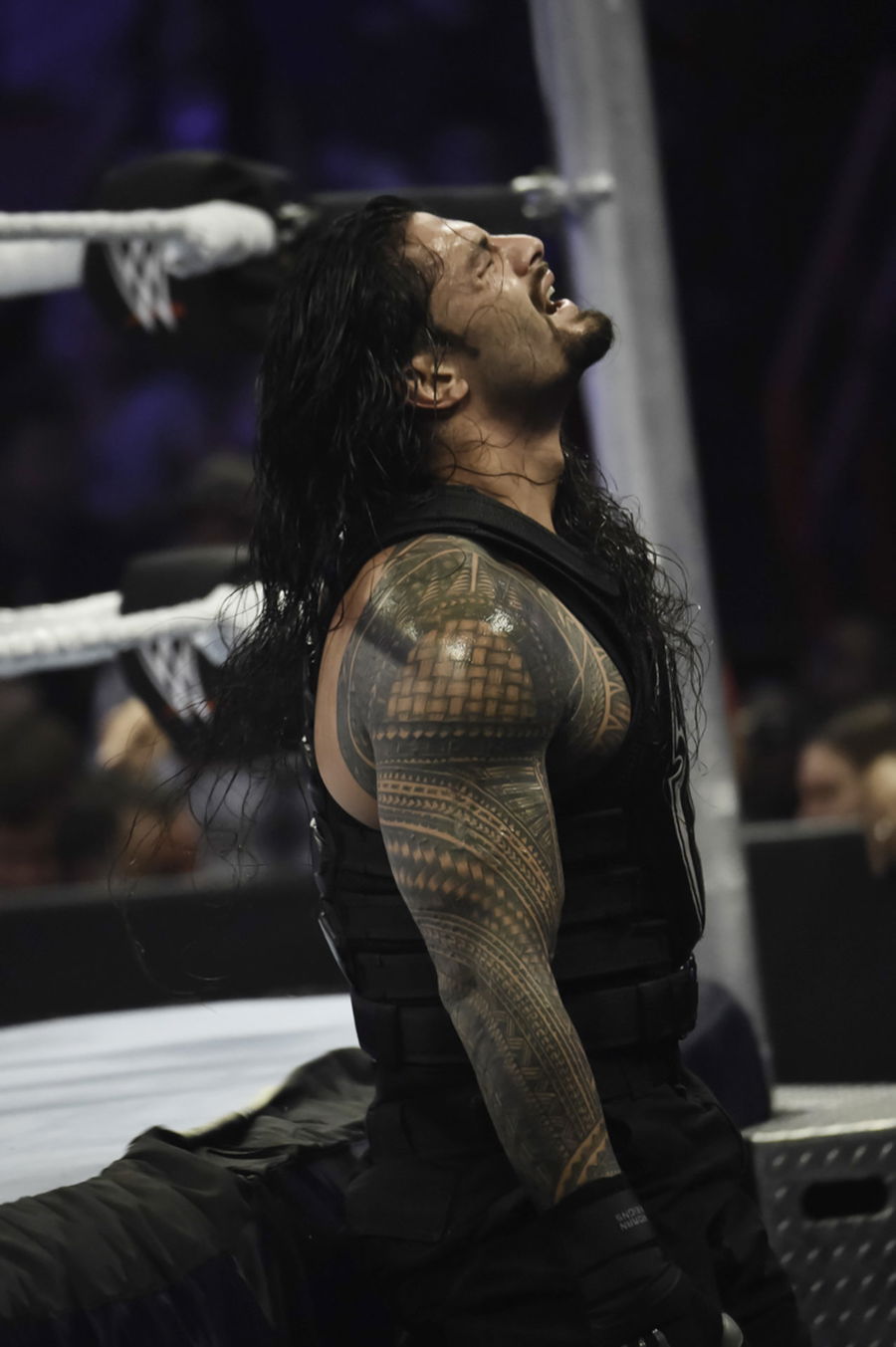 MIAMI, FL- SEPTEMBER 01: Roman Reigns reacts during the WWE SmackDown on September 1, 2015, at the American Airlines Arena in Miami, Florida. (Photo by Ron ElkmanSports Imagery/Getty Images)
