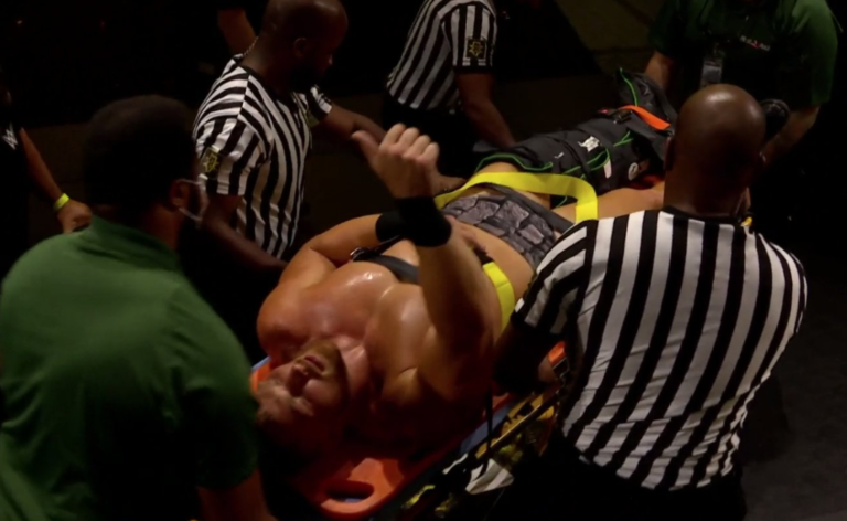Fans were quick to point out that this was all work and the storytelling angle was to get a cheap heat on Holland. Being famous for being unsafe in the ring this would easily generate sympathy for the babyface. Dragunov was stretchered out while Holland looked distraught in the ring.