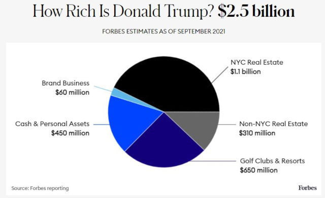 Forbes recently drew up a chart of where Trump’s wealth is and how much of it lies in those businesses.