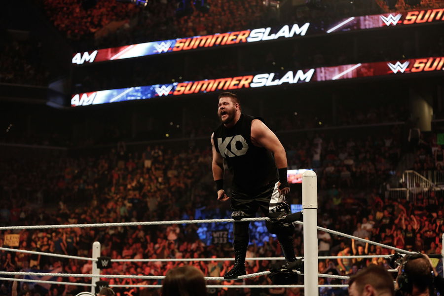 NEW YORK, NY – AUGUST 23: Kevin Owens celebrates his victory over Cesaro at the WWE SummerSlam 2015 at Barclays Center of Brooklyn on August 23, 2015 in New York City. (Photo by JP Yim/Getty Images)