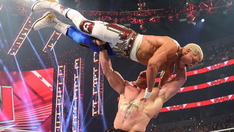 The 05/22 edition of Monday Night Raw opened with a backstage appearance of Rhodes. Suddenly, out of nowhere, Lesnar poped up and attacks him. He tossed him backstage and threw him into a wide array of objects. Lastly, he slammed Rhodes and banged his left arm into the garage door with a barrel, leaving his rival writhing in pain.