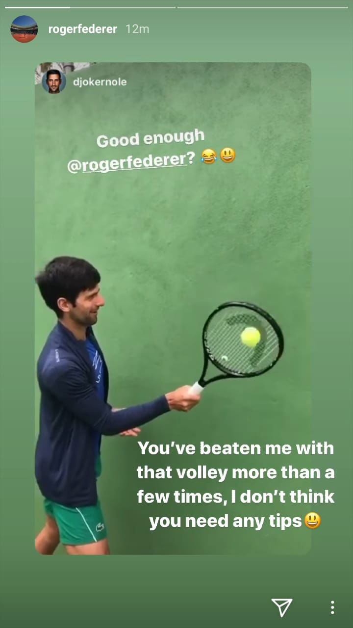 Federer had a hilarious response to Novak Djokovic. This is what Federer said in his own story after a short while –